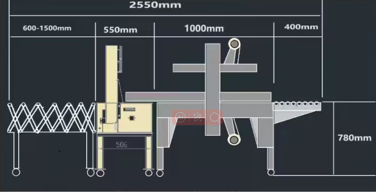 Automatic tape wrapping fro box sealing packing machine, tape wrapping for 2 or 4 straps to achieve box packing.Adhesive tape strapping machine, With in-feed and out-feed telescopic raceway conveyor.