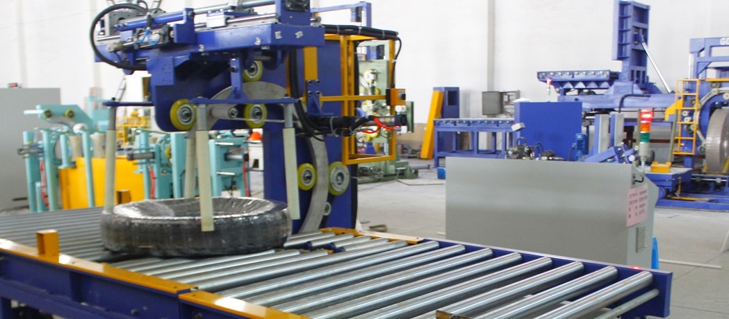 La máquina de envasado de FPT serie neumático se utiliza principalmente en el empaquetado de la llanta, así como el carrete de la manguera, tubo rodillo, etcetera. La ventaja es que es eficiente, ahorro de costos de mano de obra y materiales.