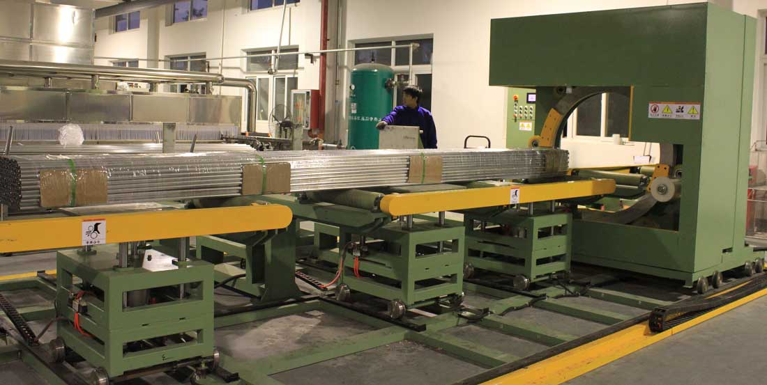 Maquina de envoltura Orbital Horizontal de aluminioMáquina de embalaje de aluminio, envoltura de Perfil de aluminio es para el transporte de los perfiles dentro y fuera de la envolvedora de paquete secundario. La tabla de rodillo de alimentación está equipada con rodillos de centrado para mantener los perfiles centrados en la tabla de rodillo antes de entrar en la máquina emp...