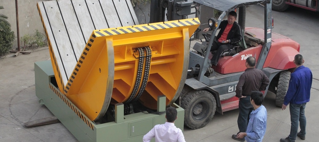 1.El tipping Machine gira la bobina en el correspondiente Melt / Pits limpio; mantiene la superficie de trabajo de la máquina a nivel con el suelo.