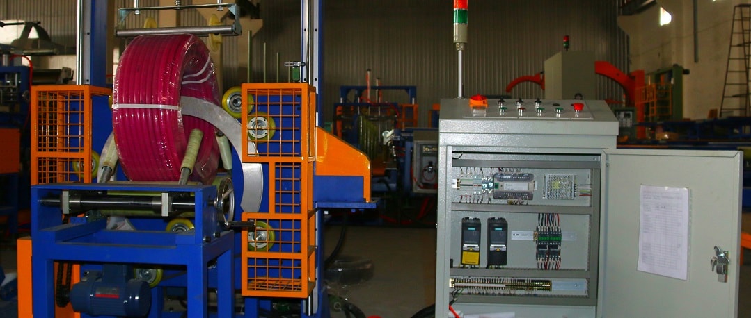 Línea automática de la máquina de envolver mangueraLínea de embalaje de la bobina de manguera automática diseñada para bobina de manguera corrugada, bobina de tubo de PVC, PE bobina de tubería de embalaje. Es un tipo horizontal envoltura de la bobina del estiramiento para el embalaje en línea por un operador. El sistema de control es PLC & HMI. Alimentador y cortador automá...